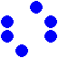 GlidersIf you've been following the R-pentomino in the applet, you've probably noticed that some of the objects are moving. This was one of the most exciting early discoveries in Life. These common moving patterns, called the Gliders, consist of just 5 cells: